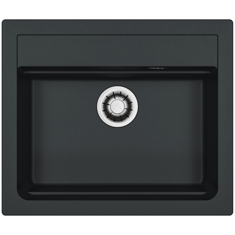 Hranatý granitový jednodřez, provedení Deep Black A90, rozměr 590 x 500 mm, vana 510 x 340 x 195 mm, horní nebo spodní montáž, minimálně 60 cm skříňka, s excentrem, 1 otvor z výroby.