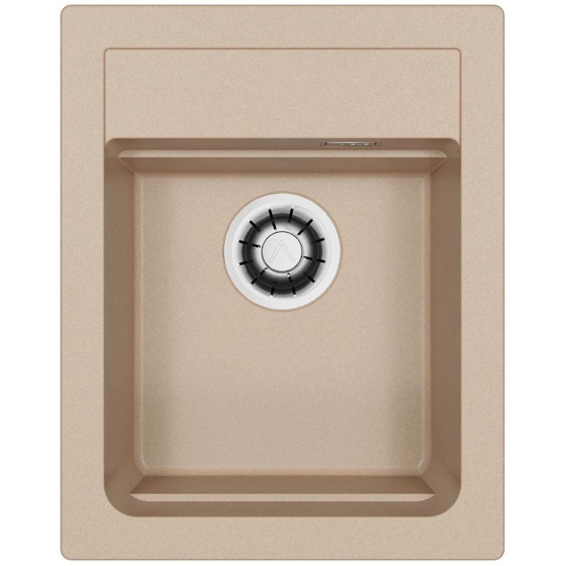 Hranatý granitový jednodřez, provedení Ivory A20, rozměr 400 x 500 mm, vana 320 x 340 x 195 mm, horní nebo spodní montáž, minimálně 40 cm skříňka, s excentrem, 1 otvor z výroby.