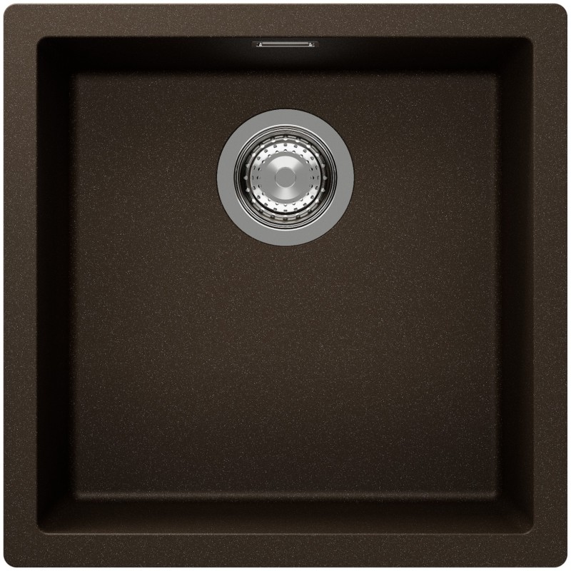 Hranatý granitový jednodřez, provedení Bronze, rozměr 456 x 456 mm, vana 400 x 400 x 200 mm, montáž do roviny, minimálně 50 cm skříňka, s excentrem.