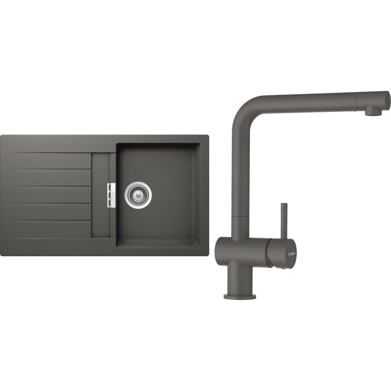 Cenově zvýhodněný set dřezu a baterie Schock S1-1 - obsahuje granitový dřez s odkapem Signus D-100 Silverstone a baterii Epos Silverstone.