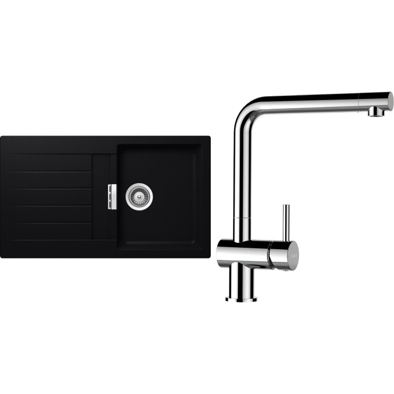 Cenově zvýhodněný set dřezu a baterie Schock S1-12 - obsahuje granitový dřez s odkapem Signus D-100 Puro a baterii Epos Chrom.