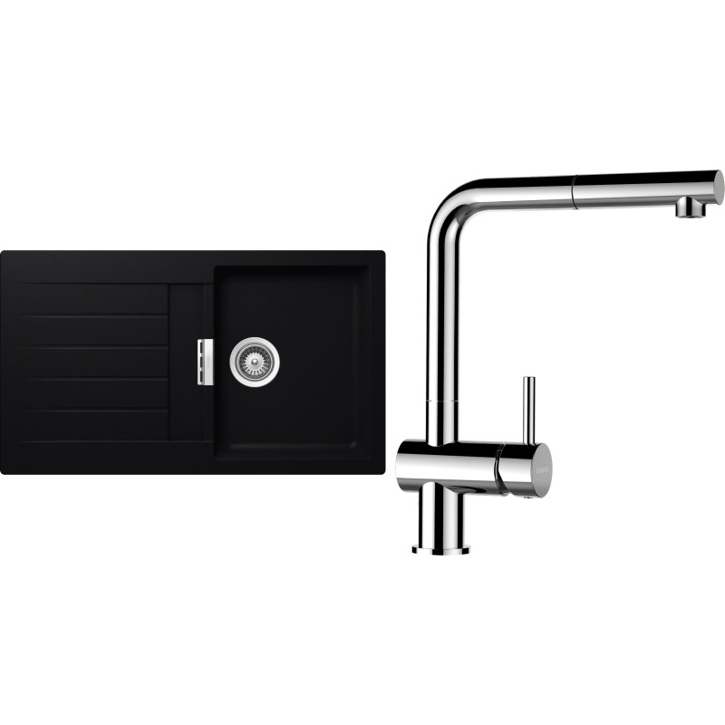 Cenově zvýhodněný set dřezu a baterie Schock S1-13 - obsahuje granitový dřez s odkapem Signus D-100 Puro a baterii s vytahovací koncovkou Epos.120 Chrom.