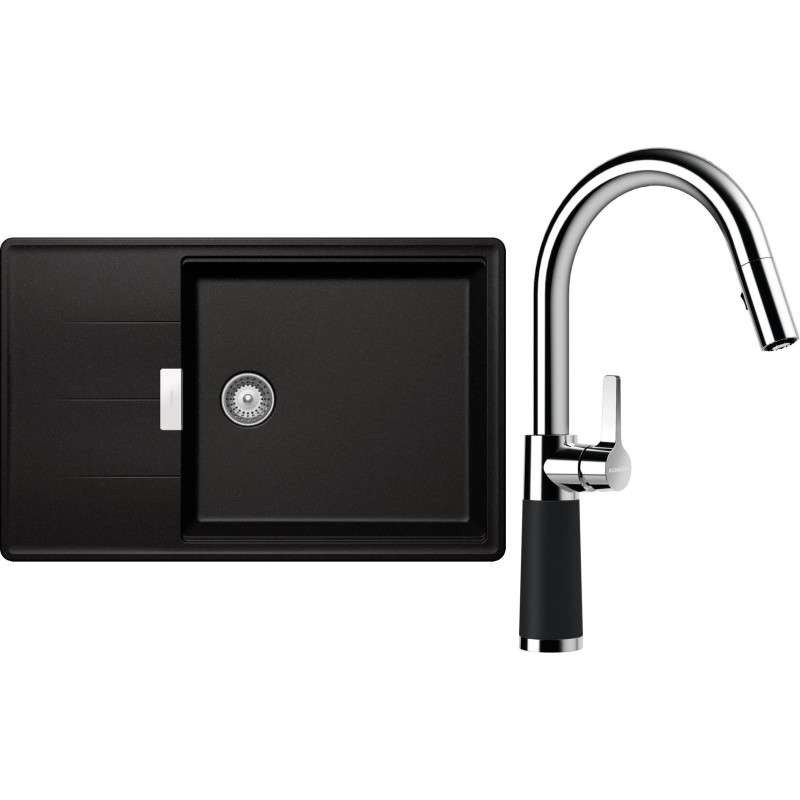 Cenově zvýhodněný set dřezu a baterie Schock S17-7 - obsahuje granitový dřez s odkapem Tia D-100LS Magma a baterii se sprchou SC-520.120 Magma.