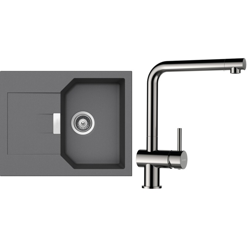Cenově zvýhodněný set dřezu a baterie Schock S18-5 - obsahuje granitový dřez s odkapem Manhattan D-100XS Croma a baterii Epos Nerezový vzhled.