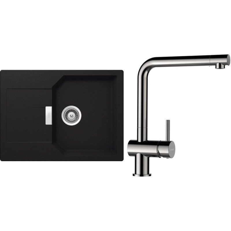 Cenově zvýhodněný set dřezu a baterie Schock S19-5 - obsahuje granitový dřez s odkapem Manhattan D-100S Onyx a baterii Epos Nerezový vzhled.