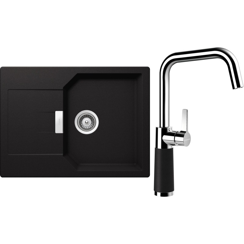 Cenově zvýhodněný set dřezu a baterie Schock S19-10 - obsahuje granitový dřez s odkapem Manhattan D-100S Nero a baterii SC-530 Nero.