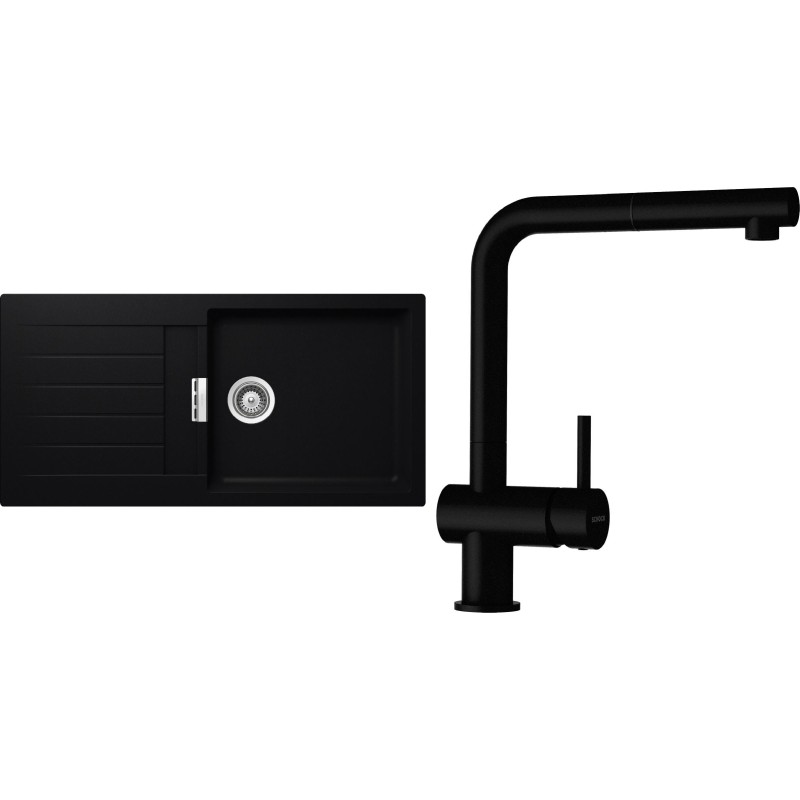 Cenově zvýhodněný set dřezu a baterie Schock S2-2 - obsahuje granitový dřez s odkapem Signus D-100L Puro a baterii s vytahovací koncovkou Epos.120 Puro.