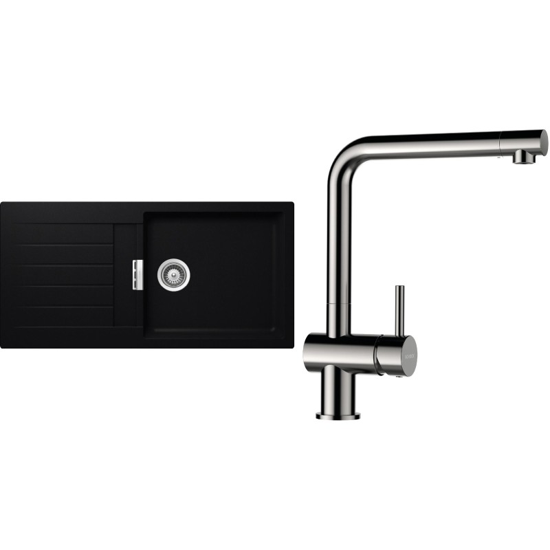 Cenově zvýhodněný set dřezu a baterie Schock S2-3 - obsahuje granitový dřez s odkapem Signus D-100L Puro a baterii Epos Nerezový vzhled.