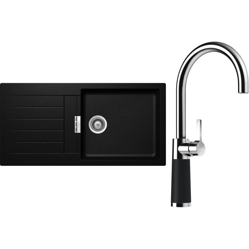 Cenově zvýhodněný set dřezu a baterie Schock S2-6 - obsahuje granitový dřez s odkapem Signus D-100L Magma a baterii SC-520 Magma.
