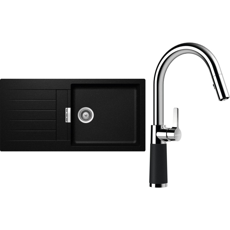 Cenově zvýhodněný set dřezu a baterie Schock S2-7 - obsahuje granitový dřez s odkapem Signus D-100L Magma a baterii se sprchou SC-520.120 Magma.