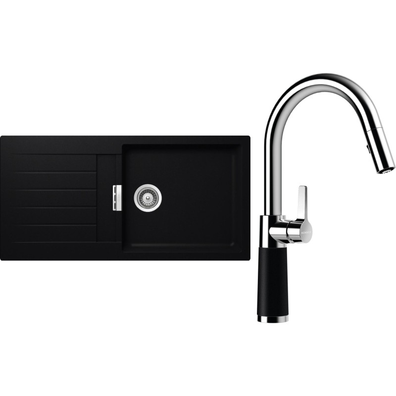Cenově zvýhodněný set dřezu a baterie Schock S2-7 - obsahuje granitový dřez s odkapem Signus D-100L Puro a baterii se sprchou SC-520.120 Puro.