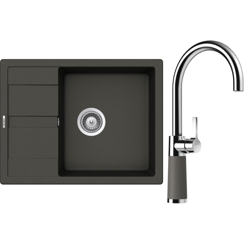 Cenově zvýhodněný set dřezu a baterie Schock S20-8 - obsahuje granitový dřez s odkapem Manhattan D-100 Asphalt a baterii SC-520 Asphalt.
