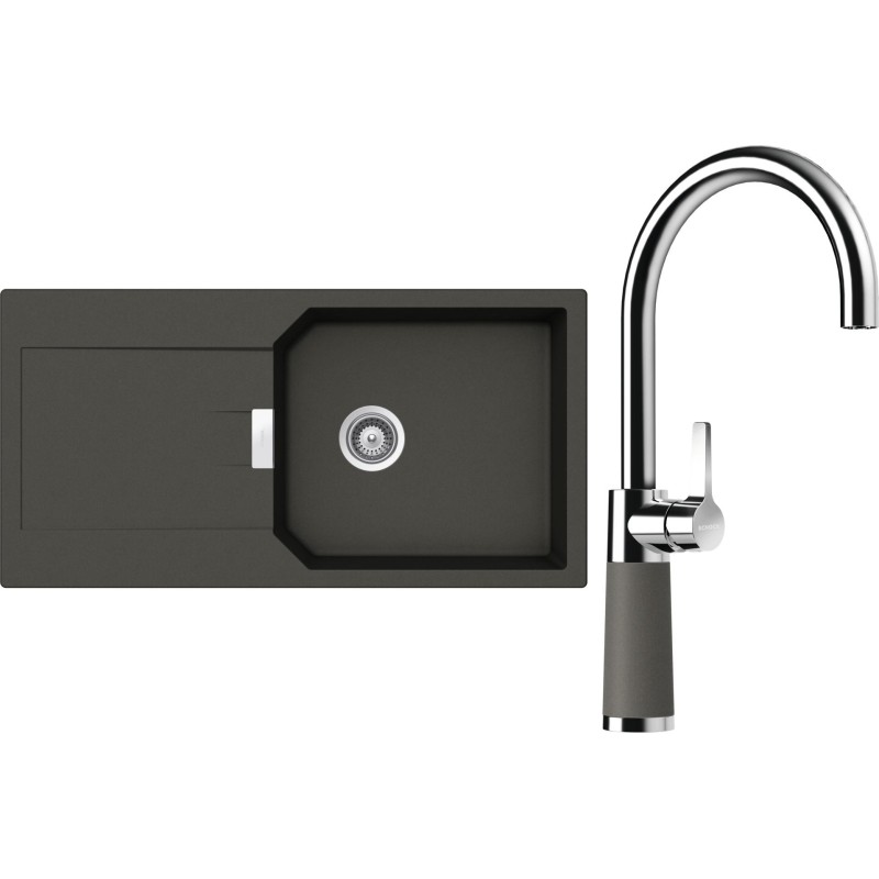 Cenově zvýhodněný set dřezu a baterie Schock S21-8 - obsahuje granitový dřez s odkapem Manhattan D-100L Asphalt a baterii SC-520 Asphalt.
