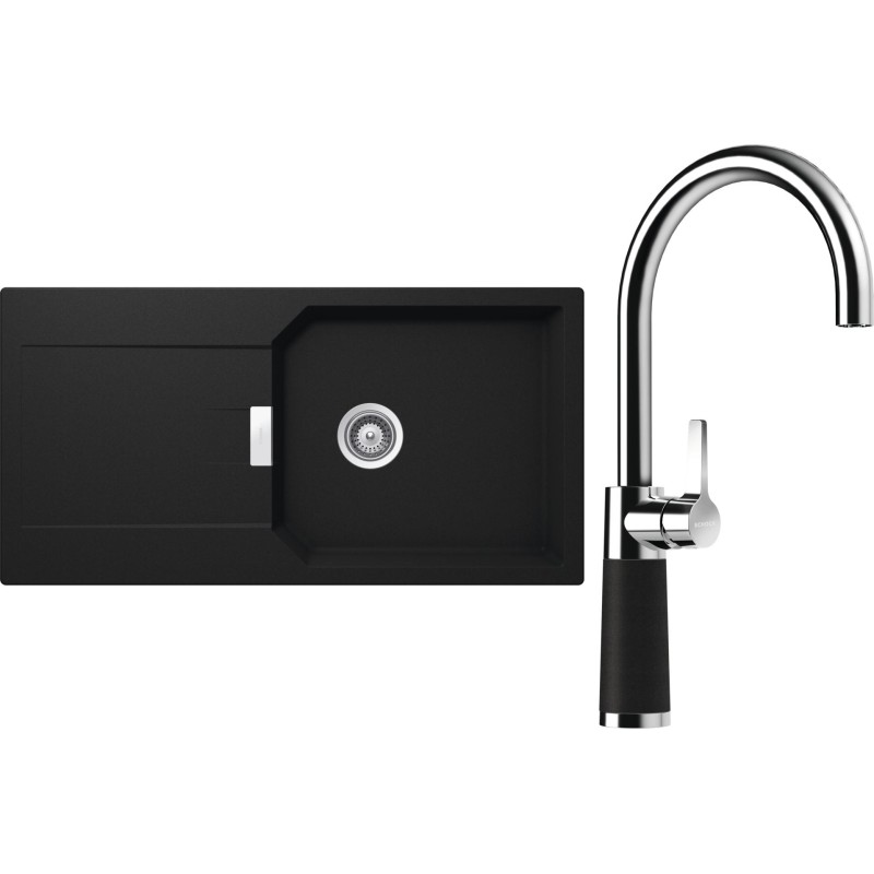 Cenově zvýhodněný set dřezu a baterie Schock S21-8 - obsahuje granitový dřez s odkapem Manhattan D-100L Onyx a baterii SC-520 Onyx.
