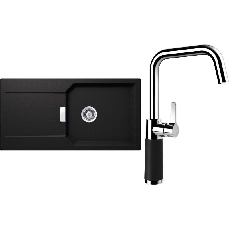 Cenově zvýhodněný set dřezu a baterie Schock S21-10 - obsahuje granitový dřez s odkapem Manhattan D-100L Nero a baterii SC-530 Nero.