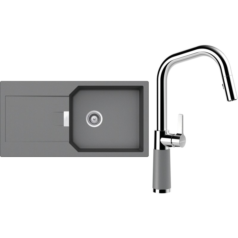 Cenově zvýhodněný set dřezu a baterie Schock S21-11 - obsahuje granitový dřez s odkapem Manhattan D-100L Croma a baterii se sprchou SC-530.120 Croma.