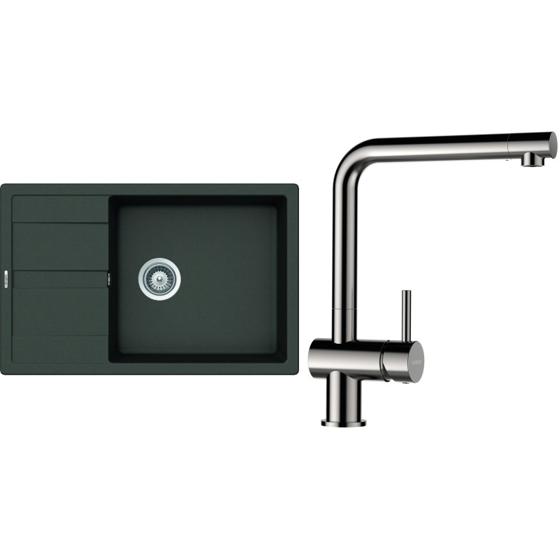 Cenově zvýhodněný set dřezu a baterie Schock S22-5 - obsahuje granitový dřez s odkapem Manhattan D-100LS Asphalt a baterii Epos Nerezový vzhled.