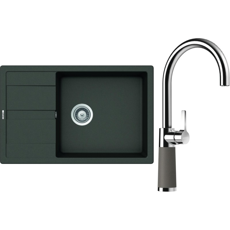 Cenově zvýhodněný set dřezu a baterie Schock S22-8 - obsahuje granitový dřez s odkapem Manhattan D-100LS Asphalt a baterii SC-520 Asphalt.