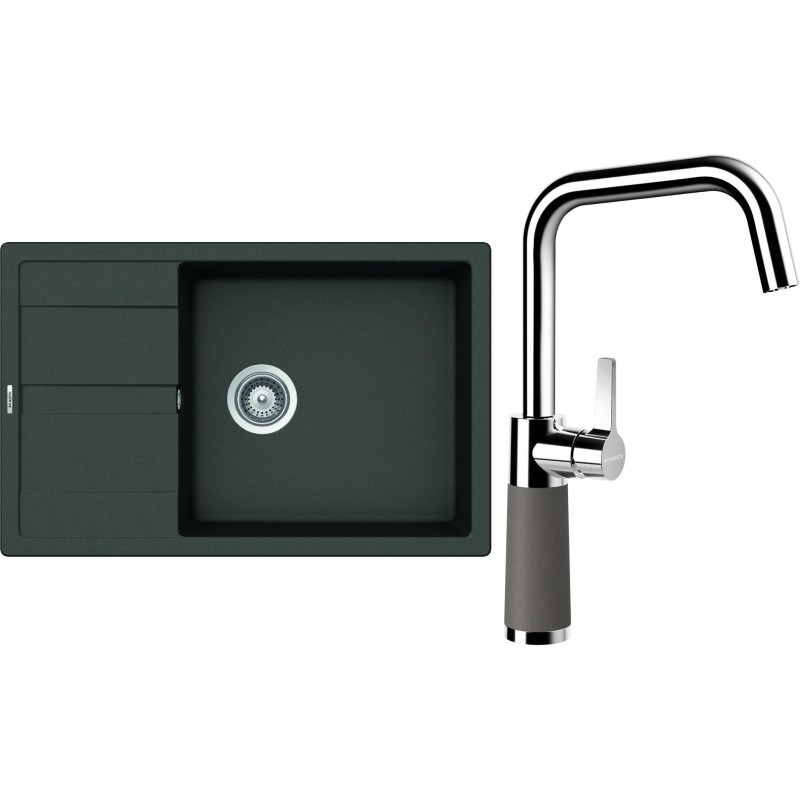 Cenově zvýhodněný set dřezu a baterie Schock S22-10 - obsahuje granitový dřez s odkapem Manhattan D-100LS Asphalt a baterii SC-530 Asphalt.