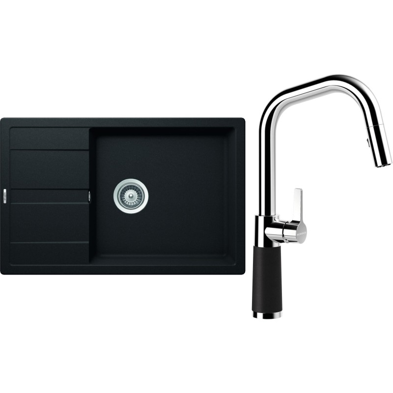 Cenově zvýhodněný set dřezu a baterie Schock S22-11 - obsahuje granitový dřez s odkapem Manhattan D-100LS Nero a baterii se sprchou SC-530.120 Nero.