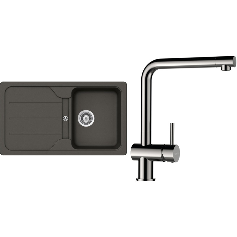 Cenově zvýhodněný set dřezu a baterie Schock S25-5 - obsahuje granitový dřez s odkapem Formhaus D-100 Asphalt a baterii Epos Nerezový vzhled.