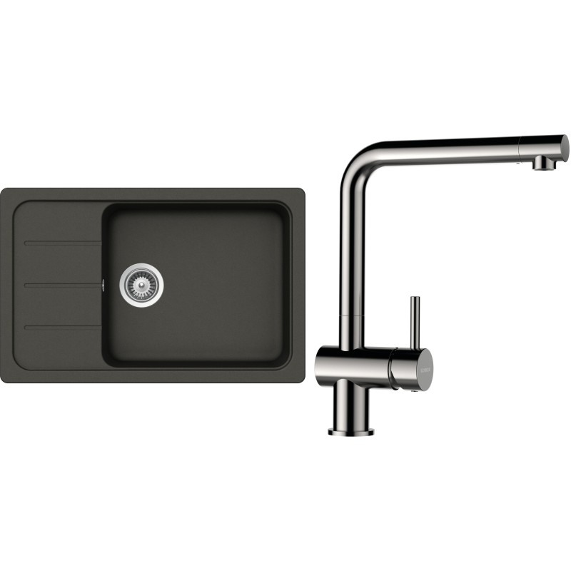 Cenově zvýhodněný set dřezu a baterie Schock S27-5 - obsahuje granitový dřez s odkapem Formhaus D-100LS Asphalt a baterii Epos Nerezový vzhled.