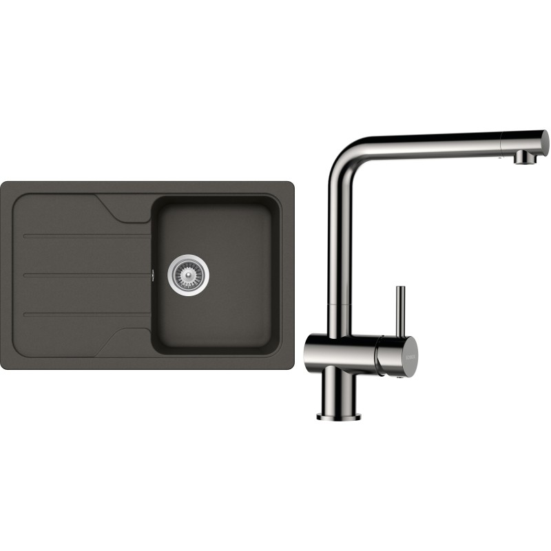 Cenově zvýhodněný set dřezu a baterie Schock S28-5 - obsahuje granitový dřez s odkapem Formhaus D-100S Asphalt a baterii Epos Nerezový vzhled.