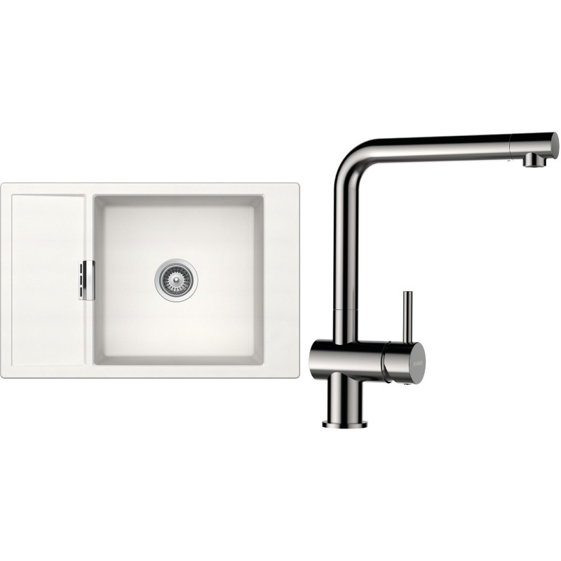 Cenově zvýhodněný set dřezu a baterie Schock S4-3 - obsahuje granitový dřez s odkapem Mono D-100XS Polaris a baterii Epos Nerezový vzhled.