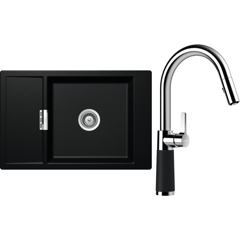 Cenově zvýhodněný set dřezu a baterie Schock S4-7 - obsahuje granitový dřez s odkapem Mono D-100XS Magma a baterii se sprchou SC-520.120 Magma.