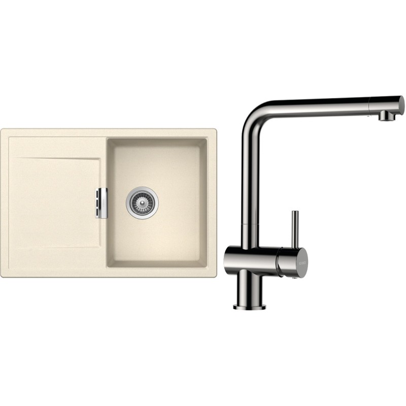 Cenově zvýhodněný set dřezu a baterie Schock S5-3 - obsahuje granitový dřez s odkapem Mono D-100S Magnolia a baterii Epos Nerezový vzhled.