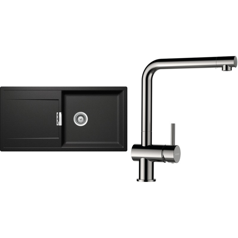 Cenově zvýhodněný set dřezu a baterie Schock S8-3 - obsahuje granitový dřez s odkapem Mono D-100L Stone a baterii Epos Nerezový vzhled.