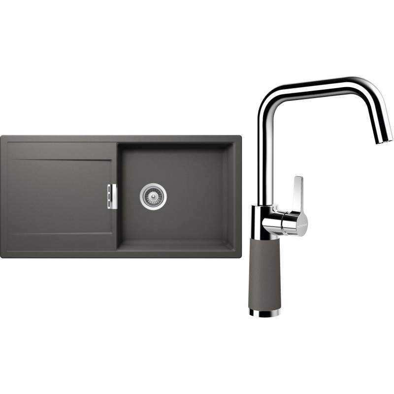 Cenově zvýhodněný set dřezu a baterie Schock S8-8 - obsahuje granitový dřez s odkapem Mono D-100L Silverstone a baterii SC-530 Silverstone.