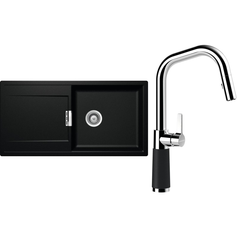 Cenově zvýhodněný set dřezu a baterie Schock S8-9 - obsahuje granitový dřez s odkapem Mono D-100L Magma a baterii se sprchou SC-530.120 Magma.