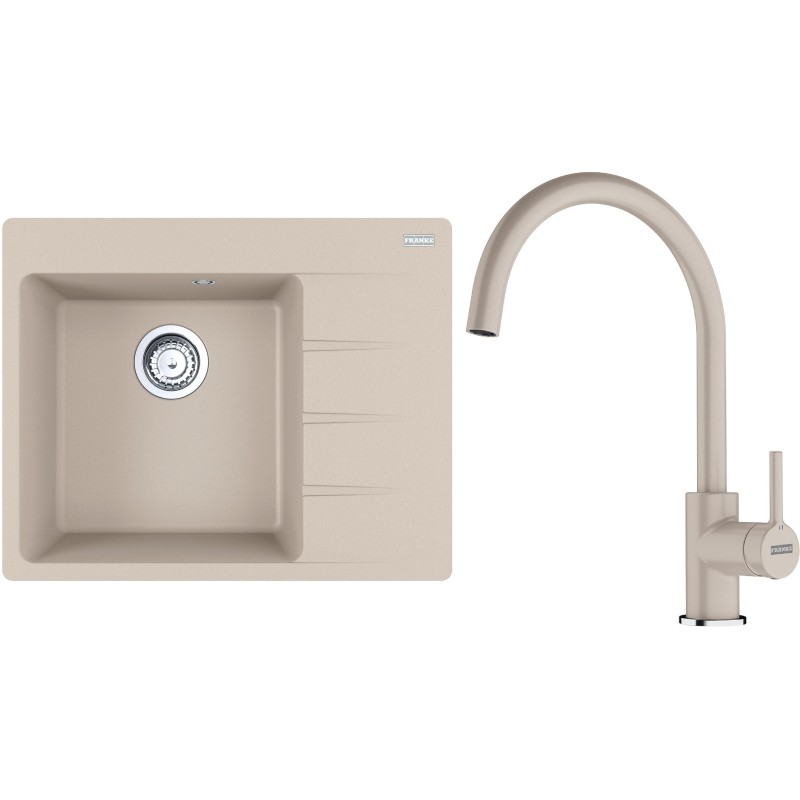 Cenově zvýhodněný set Franke G270SA obsahuje granitový dřez s odkapem CNG 611-62 TL/2 Sahara a baterii FC 6018.082 LINA Sahara.