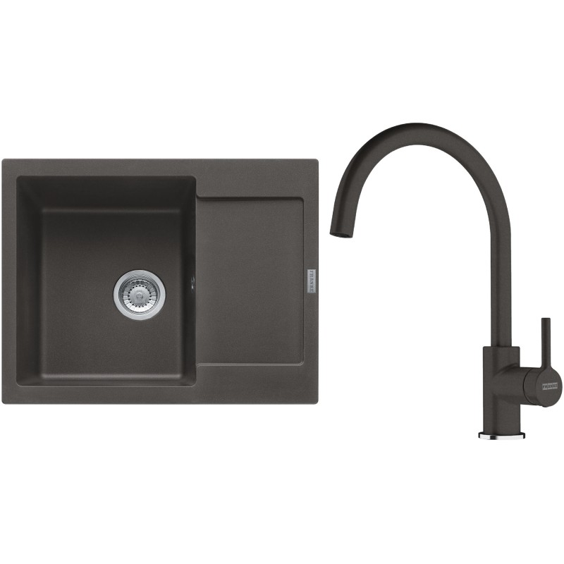 Cenově zvýhodněný set Franke G275ŠB obsahuje granitový dřez s odkapem MRG 611-62 Šedá břidlice a baterii FC 6018.088 LINA Šedá břidlice.