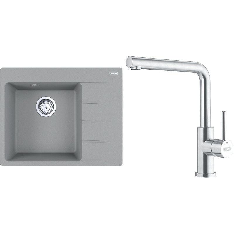 Cenově zvýhodněný set Franke G282ŠK obsahuje granitový dřez s odkapem CNG 611-62 TL/2 Šedý kámen a baterii FC 6985.501 SMART GLENDA Celonerez.