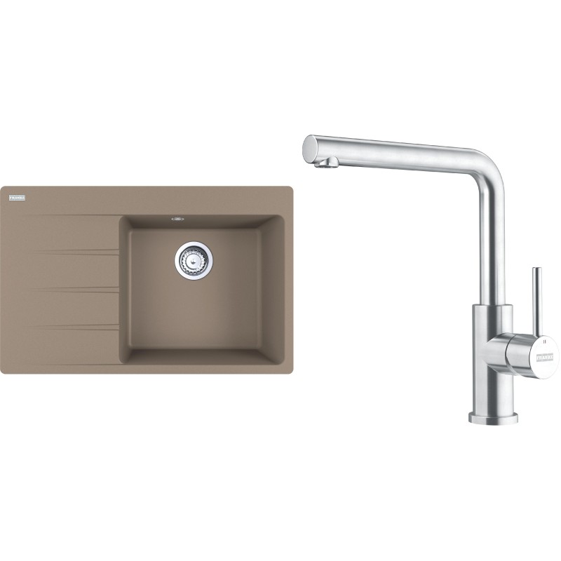 Cenově zvýhodněný set Franke G287KA obsahuje granitový dřez s odkapem CNG 611-78 TL/7 Kašmír a baterii FC 6985.501 SMART GLENDA Celonerez.