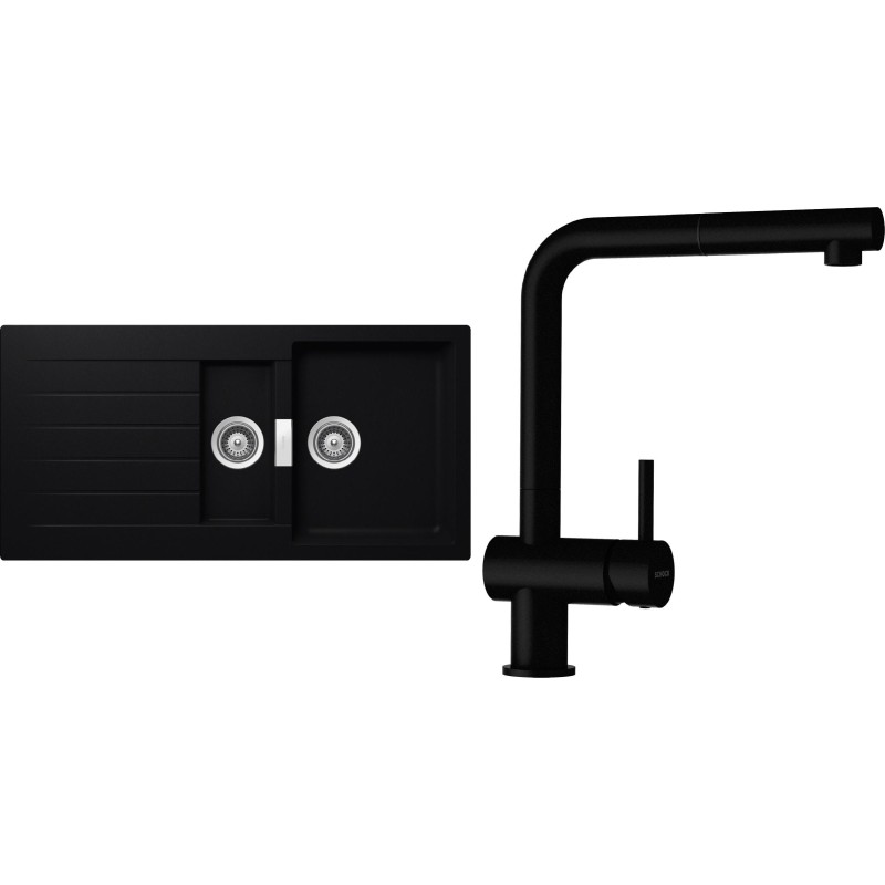 Cenově zvýhodněný set dřezu a baterie Schock S3-2 - obsahuje granitový dřez s vaničkou a odkapem Signus D-150 Puro a baterii s vytahovací koncovkou Epos.120 Puro.