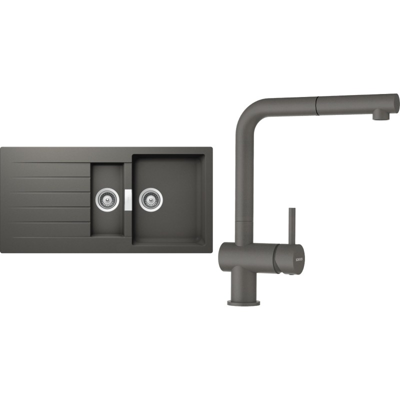 Cenově zvýhodněný set dřezu a baterie Schock S3-2 - obsahuje granitový dřez s vaničkou a odkapem Signus D-150 Silverstone a baterii s vytahovací koncovkou Epos.120 Silverstone.