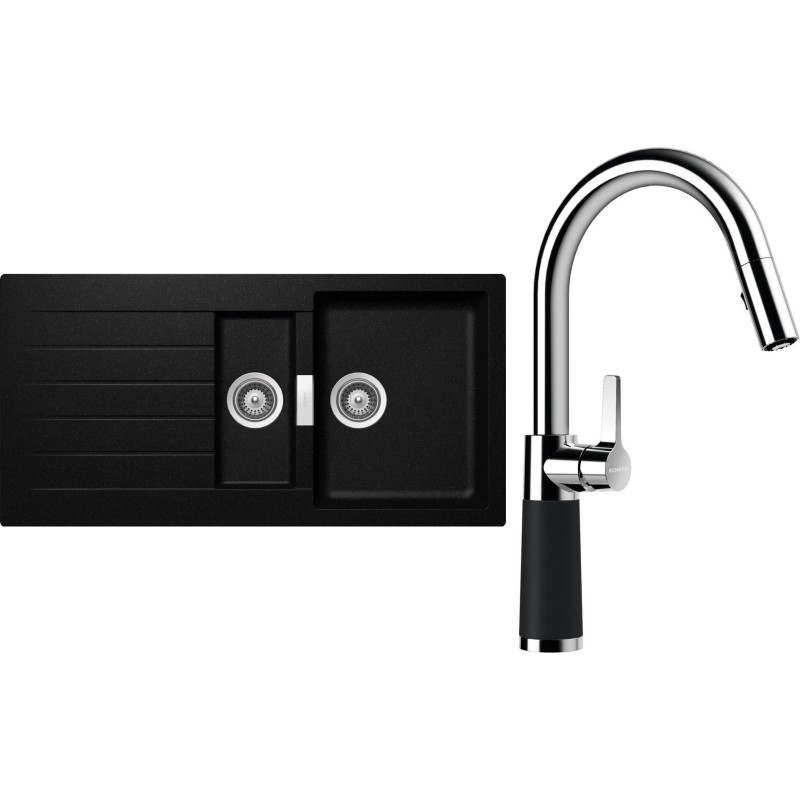 Cenově zvýhodněný set dřezu a baterie Schock S3-7 - obsahuje granitový dřez s vaničkou a odkapem Signus D-150 Magma a baterii se sprchou SC-520.120 Magma.