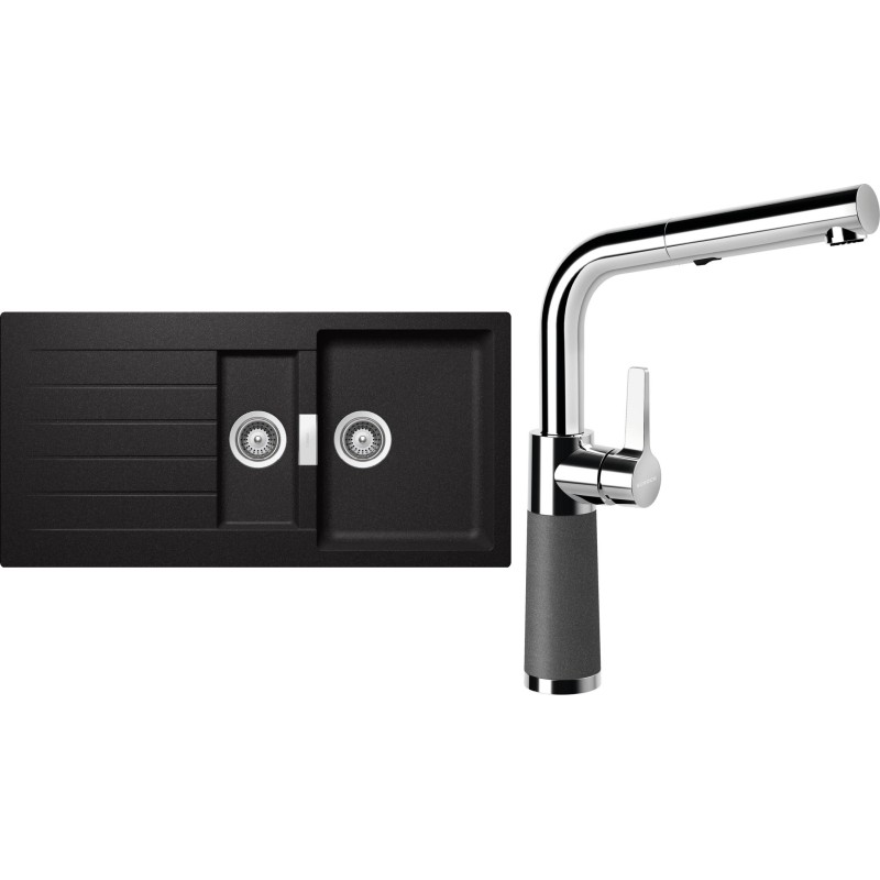 Cenově zvýhodněný set dřezu a baterie Schock S3-11 - obsahuje granitový dřez s vaničkou a odkapem Signus D-150 Stone a baterii se sprchou SC-540.120 Stone.
