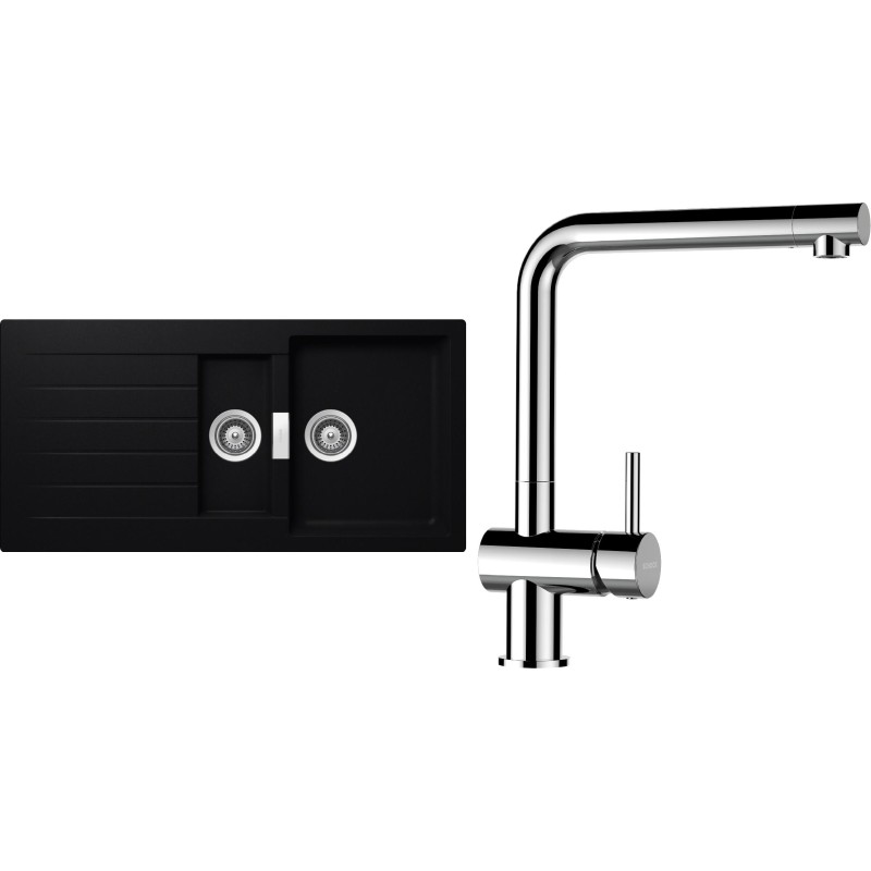 Cenově zvýhodněný set dřezu a baterie Schock S3-12 - obsahuje granitový dřez s vaničkou a odkapem Signus D-150 Puro a baterii Epos Chrom.